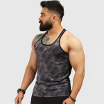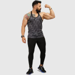 Grey printed slim-fit innerwear vests, has a scoop neck and sleeveless