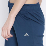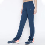 A pair of teal blue knitted mid-rise training track pants, has an elasticated waistband with an inner drawstring fastening