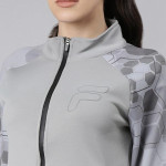 Women Grey Geometric Sporty Jacket